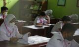 REPUBLIKA.CO.ID,PALANGKA RAYA -- Sejumlah siswa kelas 6 mengerjakan soal ujian sekolah di SD Negeri 11 Langkai Palangka Raya, Kalimantan Tengah, Senin (9/5/2022).