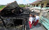 REPUBLIKA.CO.ID,JAMBI -- Pelajar SDN 164 Kota Jambi melihat sisa bekas kebakaran bangunan sekolahnya di Jambi Timur, Jambi, Senin (9/5/2022).