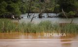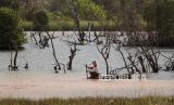 REPUBLIKA.CO.ID, BATAM -- Warga memancing ikan menggunakan rakit di area hutan bakau (mangrove) yang tercemar limbah penambangan pasir di Kawasan Nongsa, Batam, Kepulauan Riau, Senin (9/4/2022).