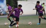 Pesepak bola Timnas Indonesia Fachruddin Aryanto menggiring bola dalam latihan jelang laga melawan Timnas Timor di Stadion Distrik Tam Nong, Phu Tho, Vietnam, Jumat (9/5/2022). Jelang laga kedua grup A SEA Games 2021 yang akan berlangsung pada Selasa (10/5) itu, Timnas Indonesia masih menghadapi kendala lapangan latihan yang buruk, salah satunya karena ukurannya yang tidak sesuai standar FIFA. (FOTO : ANTARA/Aditya Pradana Putra)