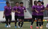 REPUBLIKA.CO.ID, PHU THO -- Sejumlah pesepak bola Timnas Indonesia melakukan pemanasan saat latihan jelang laga melawan Timnas Timor Leste di Stadion Distrik Tam Nong, Phu Tho, Vietnam, Jumat (9/5/2022).