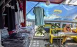 Pedagang membuka kiosnya di kawasan Teras Cihampelas, Jalan Cihampelas, Kota Bandung, Selasa (10/5/2022). Pemerintah Kota Bandung berencana akan merevitalisasi salah satu destinasi wisata kota Teras (skywalk) Cihampelas pada tahun 2022 guna mengembangkan potensi wisata dan meningkatkan pertumbuhan ekonomi. Foto: Republika/Abdan Syakura (FOTO : REPUBLIKA/ABDAN SYAKURA)