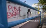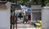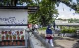Warga berjalan di depan deretan kios yang tutup di kawasan Teras Cihampelas, Jalan Cihampelas, Kota Bandung, Selasa (10/5/2022). Pemerintah Kota Bandung berencana akan merevitalisasi salah satu destinasi wisata kota Teras (skywalk) Cihampelas pada tahun 2022 guna mengembangkan potensi wisata dan meningkatkan pertumbuhan ekonomi. Foto: Republika/Abdan Syakura (FOTO : REPUBLIKA/ABDAN SYAKURA)