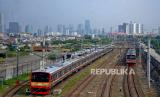 REPUBLIKA.CO.ID, JAKARTA -- Kereta listrik melintas dengan latarbelakang deretan gedung bertingkat di Jakarta, Selasa (10/5/2022). Pertumbuhan ekonomi Indonesia masih berada dalam zona positif pada kuartal I-2022. Badan Pusat Statistik (BPS) mencatat, perekonomian pada tiga bulan pertama tahun ini tumbuh 5,01% secara tahunan (yoy).