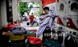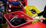 Pekerja merapikan pakaian sebelum dicuci di Laundry Jourdan di Jakarta, Selasa (10/5/2022). Usai libur lebaran 1443 Hijriah, jasa laundry mengalami peningkatan jumlah permintaan hingga 50 persen atau sebanyak 150 kilogram perhari dari hari biasanya sebanyak 75 kilogram. (FOTO : Republika/Thoudy Badai)