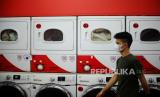 Pekerja menunggu proses pengeringan pakaian di Laundry Jourdan di Jakarta, Selasa (10/5/2022). Usai libur lebaran 1443 Hijriah, jasa laundry mengalami peningkatan jumlah permintaan hingga 50 persen atau sebanyak 150 kilogram perhari dari hari biasanya sebanyak 75 kilogram. (FOTO : Republika/Thoudy Badai)