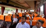 Santri naik bus untuk kembali ke Pondok Pesantren Modern Gontor di Halaman Parkir Bandara Adisucipto, Yogyakarta, Rabu (11/5/2022). Sebanyak 200an santri dari Yogyakarta kembali menuju Pondok Pesantren Modern Gontor secara bersama-sama. Orang tua wali santri juga ikut mengantarkan para santri hingga bus berangkat. (FOTO : Wihdan Hidayat / Republika)