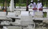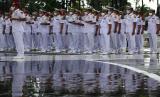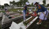 REPUBLIKA.CO.ID,SURABAYA -- Personel TNI Angkatan Laut menabur bunga saat berziarah di Taman Makam Pahlawan (TMP) Sepuluh Nopember, Surabaya, Jawa Timur, Rabu (11/5/2022).