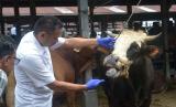 Dokter hewan bersiap memberikan suntikan vaksin kepada tenak sapi yang terindikasi Penyakit Mulut dan Kuku (PMK) di pasar hewan Desa Sibreh, Kecamatan Sibreh, Kabupaten Aceh Besar, Aceh, Selasa (11/5/2022). Dinas Pertanian kabupaten Aceh Besar hingga Selasa (11/5) menemukan sebanyak 30 ekor ternak sapi terindikasi Penyakit Mulut dan Kuku (PMK) di daerah itu, sementara kasus tertinggi PMK ternak sapi terjadi di kabupaten Aceh Tamiang sebanyak 1.767 ekor dalam pengawsasan dan perawatan dan kasus sapi mati sebanyak 16 ekor. (FOTO : ANTARA/Ampelsa)