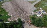 Foto udara tumpukan sampah di Tempat Pembuangan Akhir (TPA) Pesurungan, Tegal, Jawa Tengah, Rabu (11/5/2022). Menurut Dinas Lingkungan Hidup Kabupaten Tegal volume sampah di kawasan Pantura pasca Lebaran mengalami peningkatan 20 persen dibanding hari biasa dari 500 ton menjadi 600 ton per hari. (FOTO : ANTARA/Oky Lukmansyah)