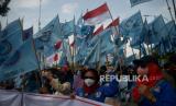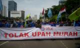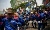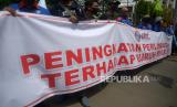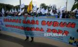 Ratusan buruh menggelar aksi damai menuntut peningkatan kesejahteraan kaum buruh..