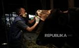 REPUBLIKA.CO.ID,Petugas Dinas Ketahanan Pangan Kota Tangerang memeriksa kesehatan sapi di salah satu lokasi peternakan di Periuk, Kota Tangerang, Banten, Jumat (13/5/2022).