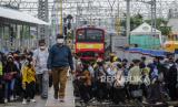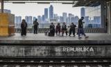 Sejumlah calon penumpang menunggu kedatangan KRL di Stasiun Manggarai, Jakarta, Jumat (13/5/2022). Kementerian Perhubungan berencana menaikan tarif KRL Commuter Line menjadi Rp 5.000 untuk perjalanan 25 kilometer dari sebelumnya sebesar Rp 3.000. Republika/Putra M. Akbar (FOTO : Republika/Putra M. Akbar)
