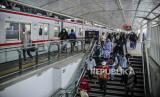 Sejumlah penumpang usai menaiki KRL di Stasiun Manggarai, Jakarta, Jumat (13/5/2022). Kementerian Perhubungan berencana menaikan tarif KRL Commuter Line menjadi Rp 5.000 untuk perjalanan 25 kilometer dari sebelumnya sebesar Rp 3.000. Republika/Putra M. Akbar (FOTO : Republika/Putra M. Akbar)