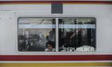 Penumpang berada di dalam KRL di Stasiun Manggarai, Jakarta, Jumat (13/5/2022). Kementerian Perhubungan berencana menaikan tarif KRL Commuter Line menjadi Rp 5.000 untuk perjalanan 25 kilometer dari sebelumnya sebesar Rp 3.000. Republika/Putra M. Akbar (FOTO : Republika/Putra M. Akbar)