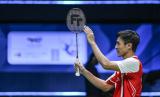 REPUBLIKA.CO.ID, BANGKOK -- Ekspresi dari pebulu tangkis tunggal putra Indonesia Shesar Hiren Rhustavito usai mengalahkan pebulu tangkis tunggal putra Jepang Kodai Naraoka dalam pertandingan babak semifinal final Piala Thomas 2022 di Impact Arena, Bangkok, Thailand, Jumat (13/5/2022).