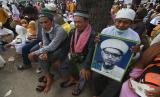 REPUBLIKA.CO.ID,PALU -- Jamaah membawa foto Sayyid Idrus bin Salim Aljufri atau Guru Tua saat mengikuti puncak peringatan Haul Guru Tua di Kompleks Alkhairaat di Palu, Sulawesi Tengah, Sabtu (14/5/2022).