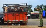 Petugas menyemprotkan cairan disinfektan pada kendaraan yang mengangkut hewan di Pasar Hewan, Kudus, Jawa Tengah, Sabtu (14/5/2022). Penyemprotan dari Dinas Pertanian dan Pangan (Dispertan) itu guna mencegah penyebaran wabah virus PMK (Penyakit Mulut dan Kuku) pada hewan ternak.  (FOTO : ANTARA/Yusuf Nugroho)
