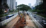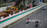 REPUBLIKA.CO.ID, JAKARTA -- Pekerja menyelesaikan proyek revitalisasi Halte Transjakarta Gelora Bung Karno, Jakarta, Ahad (15/5/2022). PT Transjakarta merevitalisasi sebanyak 46 halte bus Transjakarta diantaranya 4 halte ikonik, 4 halte terintegrasi antar moda angkutan dan peremajaan 38 halte biasa. Revitalisasi tersebut menghabiskan anggaran sebanyak Rp 600 miliar dan ditargetkan rampung selama 6 bulan pengerjaan.