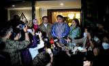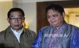 REPUBLIKA.CO.ID, JAKARTA -- Gubernur Jawa Barat Ridwan Kamil berkunjung ke rumah Ketua Umum Partai Golkar Airlangga Hartarto di Jakarta, Ahad (15/5/2022). Pertemuan tersebut dalam rangka silaturahmi dan halal bi halal lebaran 1443 Hijriah. Sejumlah tokoh politik menjalin komunikasi berbalut silaturahim pascalebaran 2022.