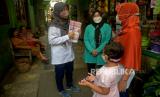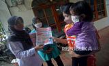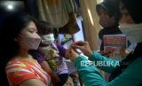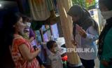 Petugas Puskesmas Kecamatan Menteng melakukan sosialisasi terkait penyakit hepatitis akut disela pelaksanaan posyandu di Kawasan Pemukiman Jalan Ayer 5, Menteng, Jakarta, Rabu (18/5/2022). Melauli kegiatan program sosialisasi tersebut diharapkan dapat mencegah dan menghambat penularan penyakit hepatitis akut di masyarakat.Prayogi/Republika (FOTO : Prayogi/Republika.)