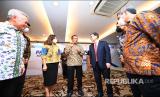 Direktur Utama Bank PT Bank Tabungan Negara (Persero) Tbk, Haru Koesmahargyo (tengah) berbincang-bincang dengan sejumlah perwakilan di sela acara penandatanganan Perjanjian Pinjaman Bank BTN dengan JICA, Citi Bank dan BCA di Jakarta, Rabu (18/5/2022). (FOTO : Dok BTN)