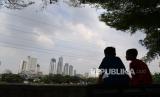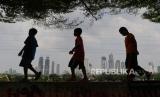 REPUBLIKA.CO.ID, JAKARTA -- Anak-anak bermain dengam latar belakang gedung perkantoran di Jakarta, Rabu (18/5/2022). Pemerintah Provinsi DKI Jakarta sedang membahas sejumlah usulan untuk Rancangan Undang-Undang (RUU) Kekhususan Jakarta sebagai persiapan setelah Jakarta tidak lagi menjadi ibu kota negara (IKN).