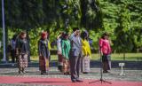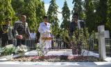 Menkopolhukam Mahfud MD (tengah) memimpin penghormatan ketika berziarah ke Taman Makam Pahlawan Seroja di Kota Dili, Timor Leste, Kamis (19/5/2022). Taman Makam Pahlawan Seroja merupakan tempat pemakaman para prajurit Indonesia yang gugur di Timor Leste. (FOTO : ANTARA/Galih Pradipta)