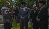 Menkopolhukam Mahfud MD (kedua kiri) didampingi Duta Besar Republik Indonesia untuk Timor Leste Okto Dorinus Manik (kanan) dan Gubernur Nusa Tenggara Timur (NTT) Viktor Bungtilu Laiskodat (kiri) berziarah ke Taman Makam Pahlawan Seroja di Kota Dili, Timor Leste, Kamis (19/5/2022). Taman Makam Pahlawan Seroja merupakan tempat pemakaman para prajurit Indonesia yang gugur di Timor Leste. (FOTO : ANTARA/Galih Pradipta)