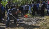Menkopolhukam Mahfud MD (kiri) menanam pohon ketika berziarah ke Taman Makam Pahlawan Seroja di Kota Dili, Timor Leste, Kamis (19/5/2022). Taman Makam Pahlawan Seroja merupakan tempat pemakaman para prajurit Indonesia yang gugur di Timor Leste. (FOTO : ANTARA/Galih Pradipta)