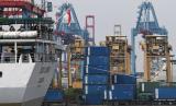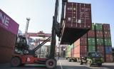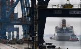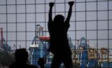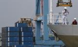 REPUBLIKA.CO.ID, JAKARTA -- Calon penumpang KM Doro Londa mengamati bongkar muat peti kemas di Pelabuhan Tanjung Priok, Jakarta, Kamis (19/5/2022). Neraca perdagangan Indonesia mencetak rekor baru surplus 7,56 miliar dolar AS pada April 2022 atau melampai rekor sebelumnya pada bulan Oktober 2021 sebesar 5,74 miliar dolar AS.