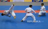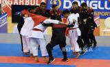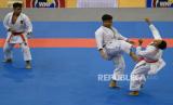 REPUBLIKA.CO.ID, NINH BINH -- Karateka Indonesia Andy Tomy, Andi Dasril dan Albiadi meraih emas pada final Kata Beregu Putra SEA Games 2021 Vietnam di di Sports Competition Center, Ninh Binh, Vietnam, Jumat (20/5/2022).