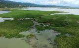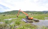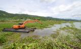 REPUBLIKA.CO.ID, GORONTALO -- Sebuah eskavator mengeruk eceng gondok di Danau Limboto di Kabupaten Gorontalo, Gorontalo, Sabtu (21/5/2022). Balai Wilayah Sungai (BWS) Sulawesi II Gorontalo terus melakukan pembersihan eceng gondok dari danau yang kini berada dalam kondisi kritis dan termasuk dalam 15 danau prioritas nasional.
