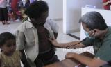 Seorang dokter memeriksa kesehatan warga saat pelayanan kesehatan gratis di Pos Lintas Batas Negara Terpadu (PLBNT) Mota Ain, Desa Silawasan, Kabupaten Belu, NTT, Ahad (22/5/2022). Komunitas Dokter Lintas Batas menggelar bakti sosial dengan menerjunkan 50 tenaga dokter spesialis untuk memeriksa kurang lebih dua ribu warga yang tinggal di wilayah perbatasan. (FOTO : ANTARA/Kornelis Kaha)