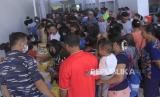 Sejumlah warga mengantre untuk mendapatkan pelayanan kesehatan gratis di Pos Lintas Batas Negara Terpadu (PLBNT) Mota Ain, Desa Silawasan, Kabupaten Belu, NTT, Ahad (22/5/2022). Komunitas Dokter Lintas Batas menggelar bakti sosial dengan menerjunkan 50 tenaga dokter spesialis untuk memeriksa kurang lebih dua ribu warga yang tinggal di wilayah perbatasan. (FOTO : ANTARA/Kornelis Kaha)