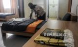 Petugas merapikan kamar untuk calon jamaah haji di Asrama Haji Pondok Gede, Jakarta, Senin (23/5/2022). Asrama Haji Pondok Gede Jakarta siap melayani calon jamaah haji tahun 1443 Hijriah, yang dijadwalkan mulai masuk Asrama pada 3 Juni 2022 sebelum keberangkatan ke Tanah Suci Mekkah dan Madinah di Arab Saudi. Republika/Putra M. Akbar (FOTO : Republika/Putra M. Akbar)