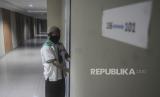 Petugas membersihkan kaca di Asrama Haji Pondok Gede, Jakarta, Senin (23/5/2022). Asrama Haji Pondok Gede Jakarta siap melayani calon jamaah haji tahun 1443 Hijriah, yang dijadwalkan mulai masuk Asrama pada 3 Juni 2022 sebelum keberangkatan ke Tanah Suci Mekkah dan Madinah di Arab Saudi. Republika/Putra M. Akbar (FOTO : Republika/Putra M. Akbar)