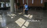 Petugas membersihkan lantai gedung penginapan untuk calon jamaah haji di Asrama Haji Pondok Gede, Jakarta, Senin (23/5/2022). Asrama Haji Pondok Gede Jakarta siap melayani calon jamaah haji tahun 1443 Hijriah, yang dijadwalkan mulai masuk Asrama pada 3 Juni 2022 sebelum keberangkatan ke Tanah Suci Mekkah dan Madinah di Arab Saudi. (FOTO : Republika/Putra M. Akbar)