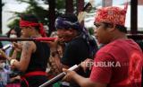 REPUBLIKA.CO.ID, PONTIANAK -- Dua orang peserta mengikuti Lomba Menyumpit yang digelar dalam Pekan Gawai Dayak ke-36 di Rumah Radakng di Pontianak, Kalimantan Barat, Ahad (22/5/2022).