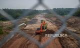 Sebuah alat berat dioperasikan untuk menyelesaikan pembangunan tol seksi II Rangkasbitung-Cileles di Lebak, Banten, Senin (23/5/2022). Jalan Tol Serang-Panimbang sepanjang 88,67 km yang akan menjadi akses menuju objek wisata Kawasan Ekonomi Khusus (KEK) Tanjung Lesung tersebut pembangunannya pada seksi II Rangkasbitung-Cileles telah mencapai 23,31 persen dan ditargetkan beroperasi pada tahun 2024.  (FOTO : ANTARA/Muhammad Bagus Khoirunas)