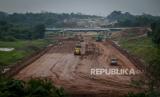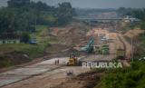 REPUBLIKA.CO.ID,LEBAK -- Pekerja menggunakan alat berat untuk menyelesaikan pembangunan tol seksi II Rangkasbitung-Cileles di Lebak, Banten, Senin (23/5/2022).