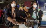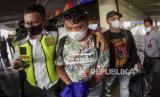 Penyidik menggiring salah satu pelaku kasus skimming berinisial JP (tenga) di Bandara Internasional Hang Nadim, Batam, Kepulauan Riau, Senin (23/5/2022). Direktorat Reserse Kriminal Khusus Polda Kepri berhasil menangkap tiga orang pelaku pencurian data nasabah Bank Riau Kepri cabang Batam di wilayah Provinsi Bali. (FOTO : ANTARA/Teguh Prihatn)