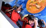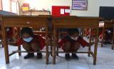 Sejumlah siswa berlindung di bawah meja saat latihan kesiapsiagaan bencana gempa dan tsunami di SD Negeri 2 Tanjung Benoa, Badung, Bali, Selasa (24/5/2022). Latihan tersebut diselenggarakan oleh United Nations Development Programme (UNDP) bekerja sama dengan BNPB sebagai bagian dari World Reconstruction Conference kelima (WRC5) yang digelar bersamaan dengan Global Platform for Disaster Risk Reduction (GPDRR) 2022 di Bali. (FOTO : ANTARA/Fikri Yusuf)