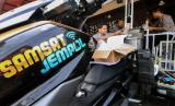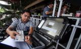 REPUBLIKA.CO.ID, LHOKSEUMAWE -- Petugas Samsat mencetak tanda bukti pelunasan kewajiban pembayaran pajak kendaraan warga melalui fasilitas sepeda motor Sijempol di salah satu warung kopi di Kota Lhokseumawe, Aceh, Selasa (24/5/2022).