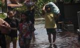 REPUBLIKA.CO.ID, PEKALONGAN -- Sejumlah warga berjalan melewati jalan di sekitar rumahnya yang tergenang banjir rob di Tirto, Pekalongan, Jawa Tengah, Selasa (24/5/2022). Berdasarkan data Badan Penanggulangan Bencana Daerah (BPBD) Kota Pekalongan, adanya fenomena air laut pasang di pesisir pantai Utara Pekalongan berimbas sejumlah daerah di Kota Pekalongan mengalami banjir rob, dengan ketinggian rata-rata mencapai antara 5-70 centimeter.