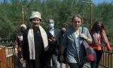Kepala Badan Nasional Penanggulangan Bencana (BNPB) Letjen TNI Suharyanto (kedua kanan) bersama Deputy Secretary General of the United Nations Amina J. Mohammed (kanan) dan sejumlah delegasi memasuki tempat untuk memanam pohon bakau saat aksi nyata Gerakan Nasional Revolusi Mental melalui Penanaman Sepuluh Juta Pohon dalam rangkaian Global Platform for Disaster Risk Reduction (GPDRR) 2022 di Pantai Mertasari, Denpasar, Bali, Selasa (24/5/2022). Kegiatan tersebut merupakan bagian dari gerakan pembudayaan gaya hidup cinta lingkungan. (FOTO : ANTARA/Nyoman Hendra Wibowo)