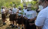Siswa SMP PGRI 3 Denpasar membawa pohon bakau saat turut dalam aksi nyata Gerakan Nasional Revolusi Mental melalui Penanaman Sepuluh Juta Pohon dalam rangkaian Global Platform for Disaster Risk Reduction (GPDRR) 2022 di Pantai Mertasari, Denpasar, Bali, Selasa (24/5/2022). Kegiatan tersebut merupakan bagian dari gerakan pembudayaan gaya hidup cinta lingkungan. (FOTO : ANTARA/Nyoman Hendra Wibowo)