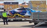 Petugas cargo melakukan bongkar muat logistik Formula E setibanya di Terminal Cargo Bandara Soekarno Hatta, Tangerang, Banten, Selasa (24/5/2022). ABB FIA Formula E World Championship seri kesembilan akan berlangsung di Sirkuit Formula E Ancol pada 4 Juni 2022. (FOTO : ANTARA/Muhammad Iqbal)