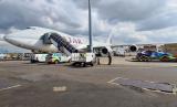 REPUBLIKA.CO.ID,TANGERANG -- Petugas cargo melakukan bongkar muat logistik Formula E setibanya di Terminal Cargo Bandara Soekarno Hatta, Tangerang, Banten, Selasa (24/5/2022).