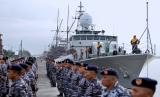 REPUBLIKA.CO.ID, BENOA -- Prajurit TNI AL mengikuti apel gelar pasukan pengamanan Global Platform for Disaster Risk Reduction (GPDRR) 2022 di Pelabuhan Benoa, Denpasar, Bali, Rabu (25/5/2022). Sekitar 550 orang prajurit TNI AL dan tiga KRI yaitu KRI Sultan Hasanuddin, KRI Keris serta KRI Surabaya dikerahkan untuk mengamankan wilayah laut selama penyelenggaraan GPDRR 2022 di Bali.